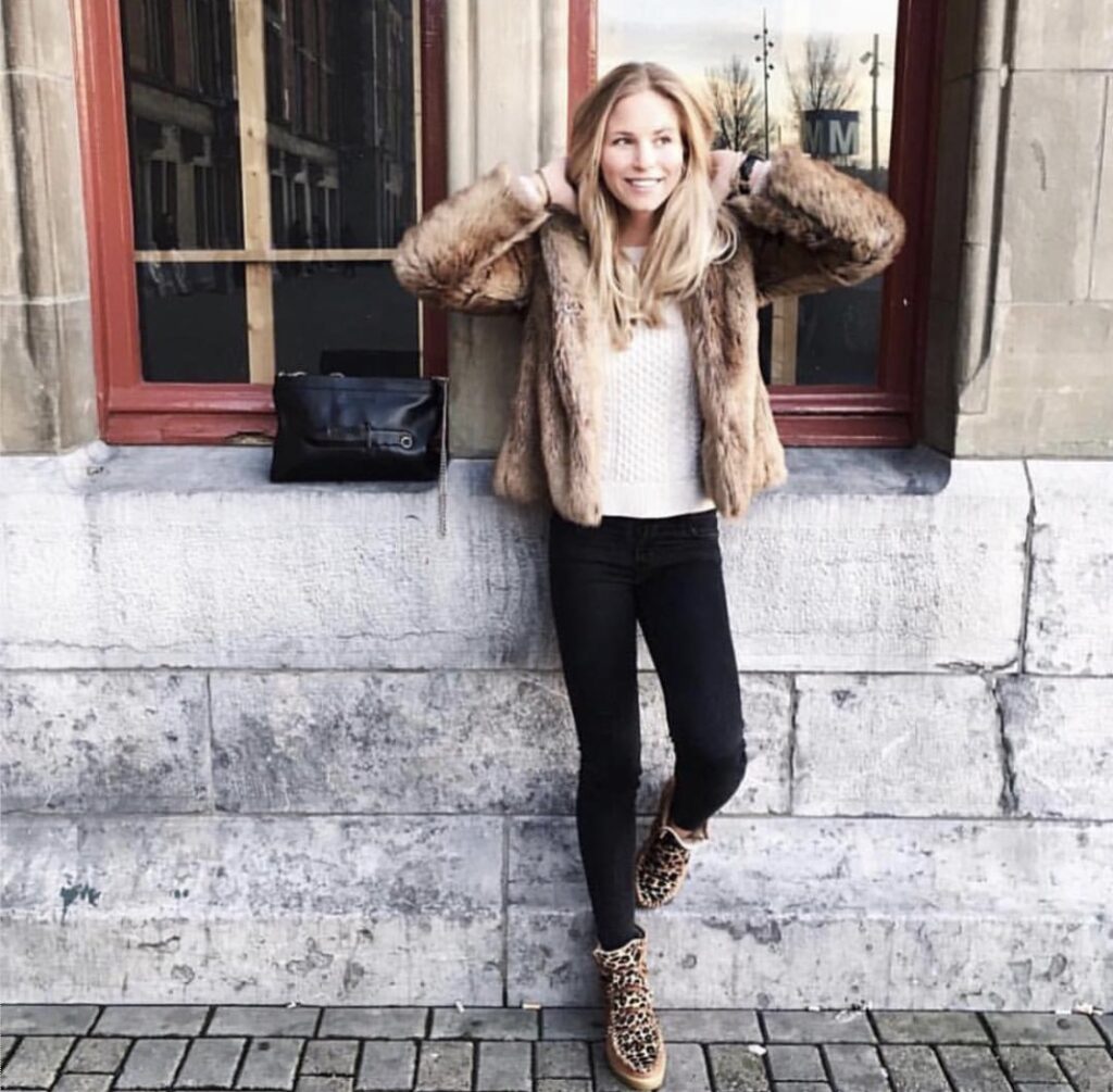 Draagt Karma of charme ymiz m leopard / Fringe jacket / Carlala jacket / star sneaker / carlala hoed